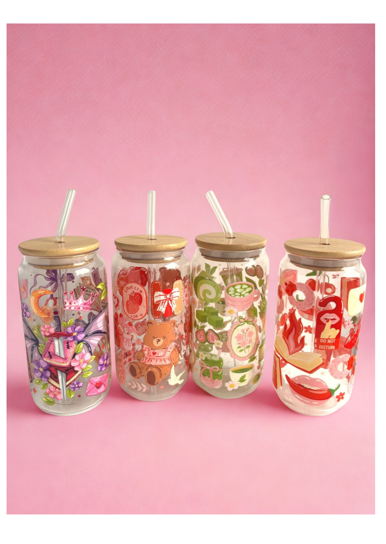 Maak jouw cozy moment helemaal compleet met onze Glass Can, verkrijgbaar in 4 stijlvolle designs: fantasy, romantasy, matcha & spicy. Perfect voor een iced coffee, matcha, thee of je favoriete drankje terwijl je geniet van een goed boek 📖☕